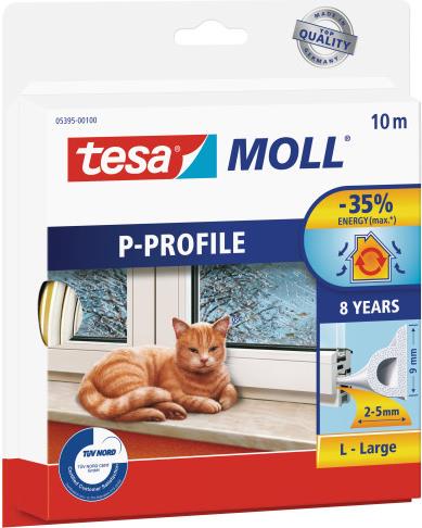tesa Moll CLASSIC P-Profil Gummidichtung, weiß, 9 mm x 10 m selbstklebend, geeignet für größere Spalten aufgrund des (05395-100-0)