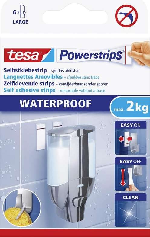 Die großen tesa Powerstrips eignen sich zum Befestigen von Objekten mit einem Gewicht bis zu zwei Kilogramm und sind vielseitig einsetzbar. Die Klebestreifen sind dank ihrer hervorragenden Haltekraft eine smarte Alternative zu Bohrer, Hammer, Schraube und Nagel. Da sie sich einfach anbringen und rückstandslos entfernen lassen, sind die Klebestreifen zudem eine sehr saubere Lösung.