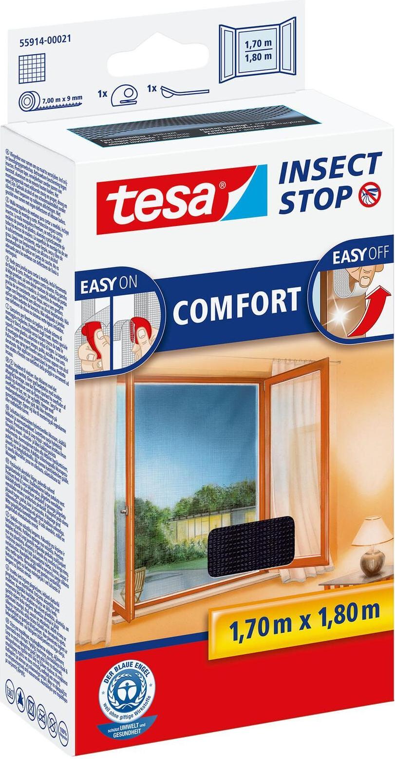 tesa Fliegengitter COMFORT für Fenster, 1,70 m x 1,80 m waschbar bis 30 Grad, UV-beständig, einfaches Anbringen und (55914-00021-00)