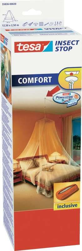 tesa Fliegengitter Moskitonetz mit Powerstrips Deckenhacken Farbe: weiß, waschbar bis 40 Grad, für dauerhafte - 6 Stück (558360-00020-00)