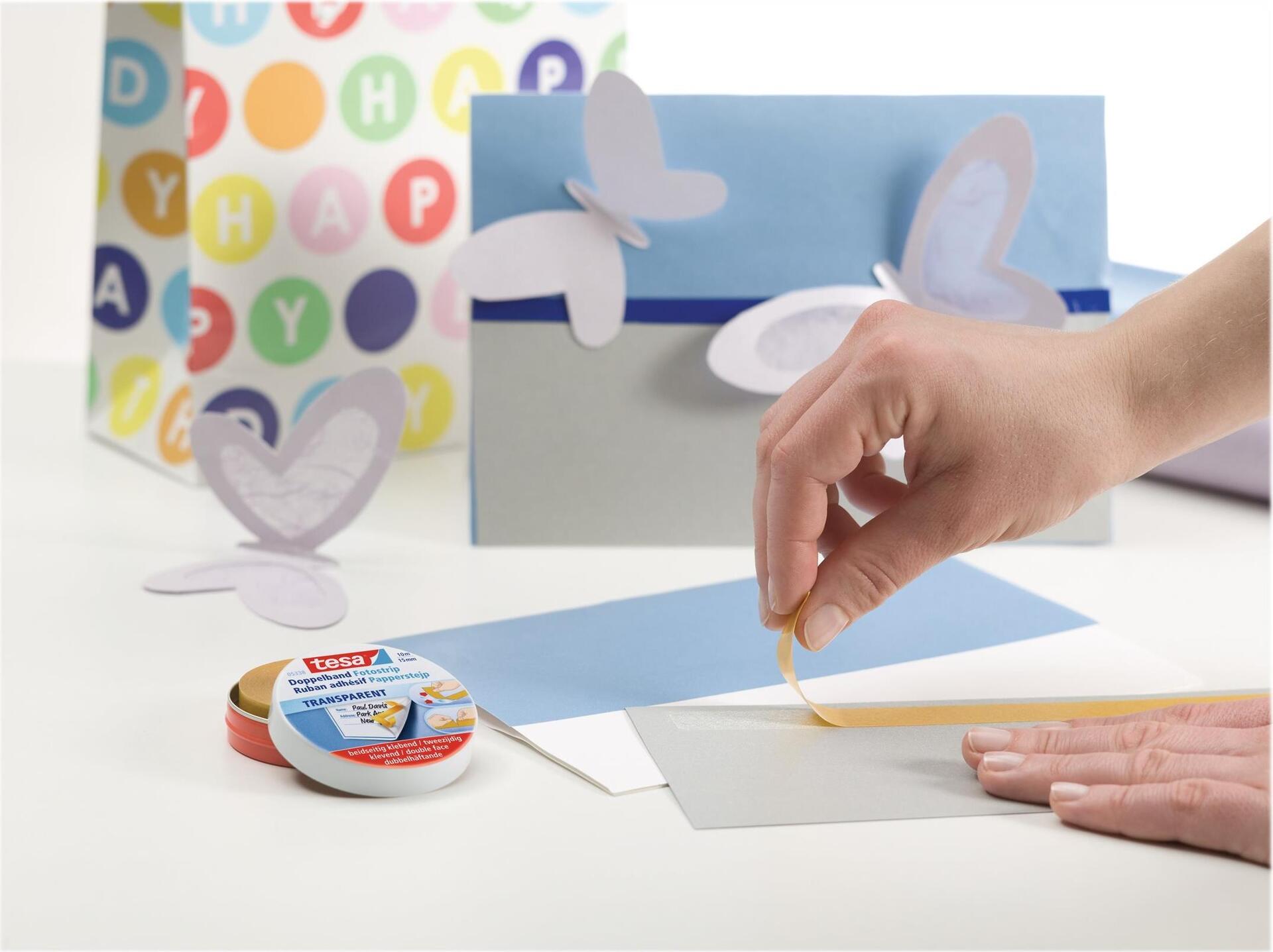 Das extra dünne tesa Doppelklebeband ist ein überaus nützlicher Alltagshelfer, lässt sich einfach handhaben und sollte in keinem Haushalt fehlen. Das Doppelklebeband eignet sich besonders für Bastel- und Dekorationsarbeiten und wird häufig zum Fixieren von Dekorationsartikeln oder zum Einkleben von Fotos ins Fotoalbum verwendet.