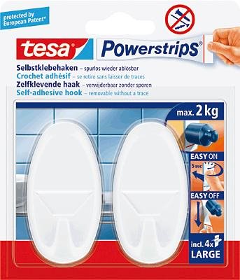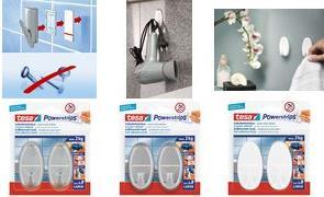 Die praktischen tesa Powerstrips Haken Large haben eine starke Halteleistung bis zu 2 kg. Sie eignen sich so ideal zum Aufhängen von vielen Gegenständen in Küche, Bad und auf Reisen.