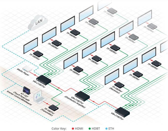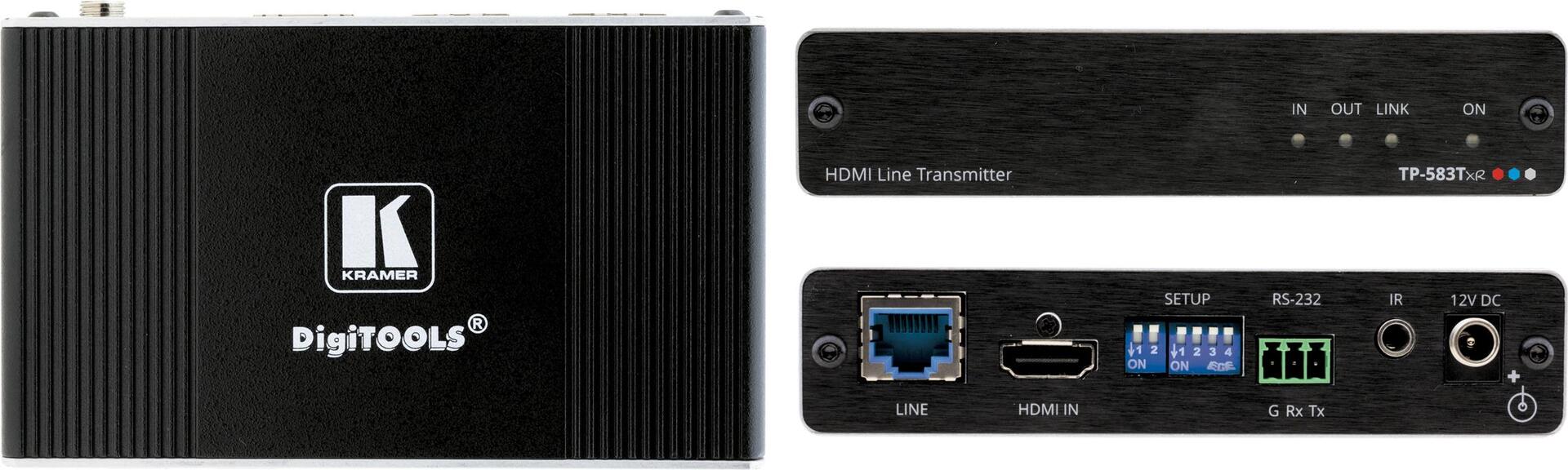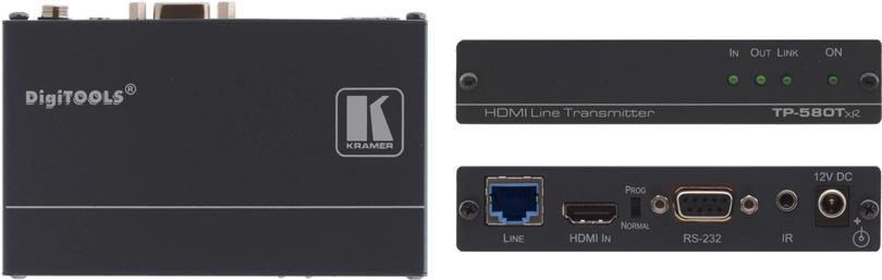 TP-583Txr ist ein leistungsstarker HDBaseT Sender mit erweiterter Reichweite für 4K-HDR-HDMI-, RS-232- und IR-Signale über Twisted Pair. TP-583Txr konvertiert alle Eingangssignale in das HDBaseT-Signal. Es ermöglicht die Erweiterung des Videosignals auf bis zu 100 m bei einer Auflösung von 4K@60 Hz (4:4:4), auf bis zu 180 m bei 4K@60 Hz (4:2:0) und bis zu 200 m bei HD-Videoauflösung über Kramer-Kupferkabel. Es ist mit Standard-HDBaseT-kompatiblen Extendern bei 4K@30 Hz und HD-Videoauflösungen kompatibel.