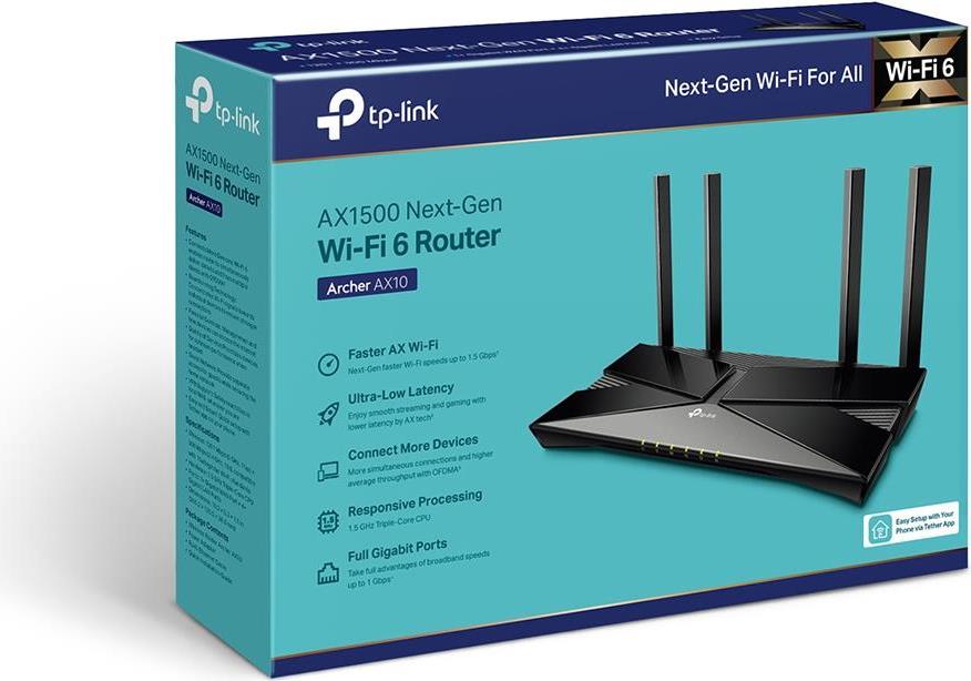 TP-Link Archer AX10 - Wireless Router - 4-Port-Switch - GigE, 802.11ax - 802.11a/b/g/n/ac/ax - Dual-Band (Archer AX10)