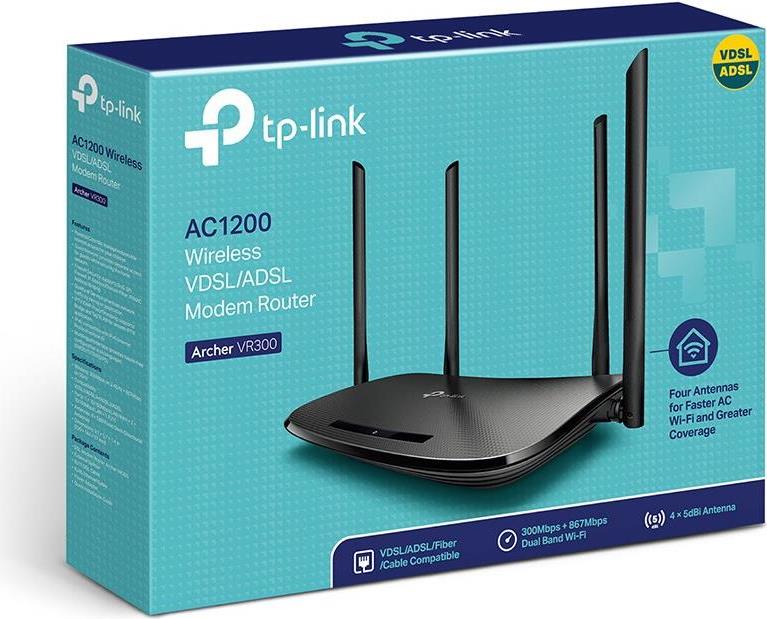 | Produktbeschreibung | TP-Link Archer VR300 - Wireless Router - DSL-Modem - Wi-Fi 5 - Desktop |