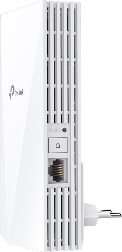 TP-Link AX3000 Wi-Fi 6 Range ExtenderSPEED: 574 Mbps at 2.4 GHz + 2402 Mbps at 5 GHzSPEC: 2 ? Internal Antennas, 1 ? Gigabit Port, Qualcomm 1.0GHz Dual-Core CPU, 1024 QAM, HE160 for 5GHz, Wall PluggedFEATURE: Tether App, WPS, Intelligent Signal Light, Access C (RE3000X(DE))