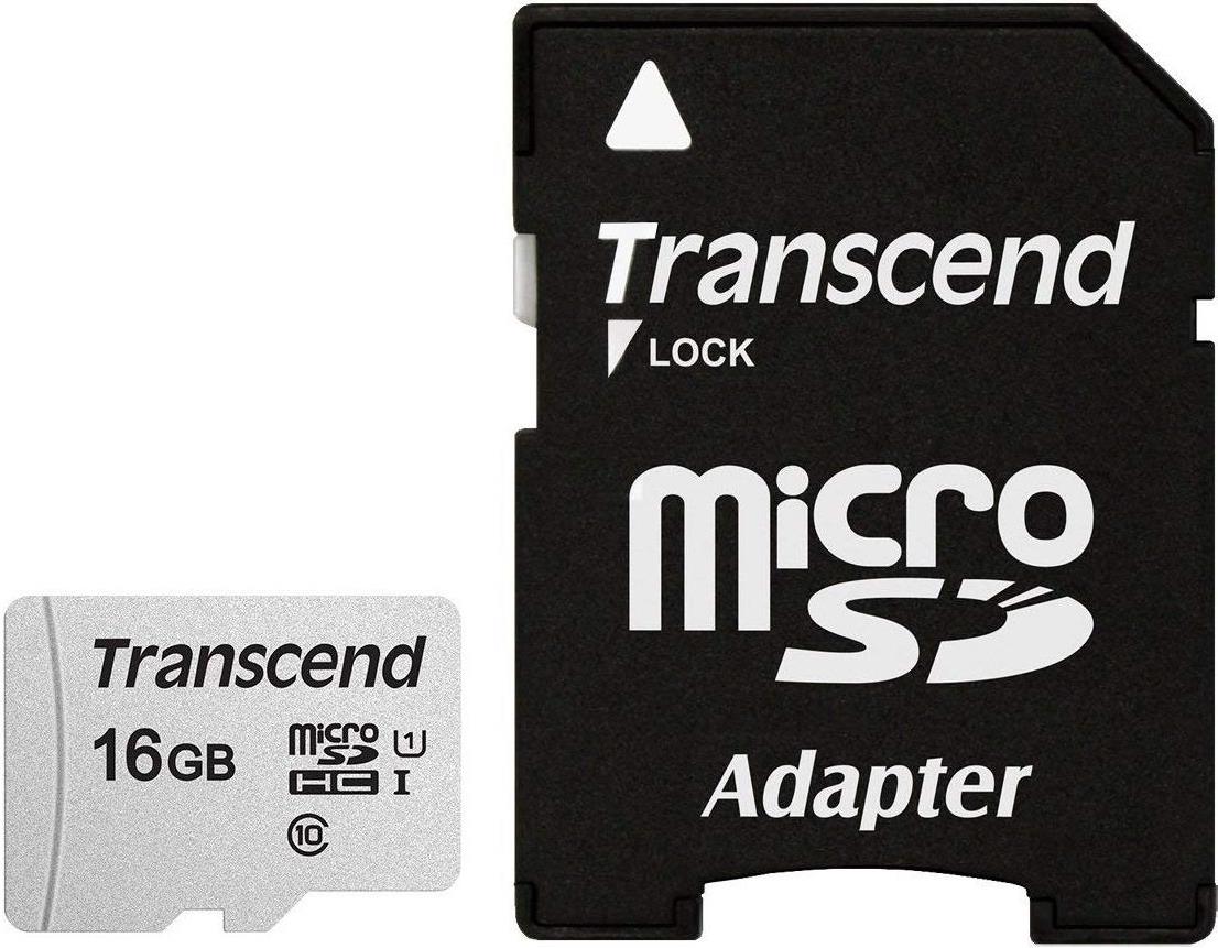 Transcend SD microSD Card 16GB SDHC USD300S-A w/Adapter (TS16GUSD300S-A)