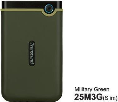 Transcend StoreJet 25M3 - Festplatte - 2TB - extern (tragbar) - 2.5" (6,4 cm) - USB 3,1 Gen 1 - 256-Bit-AES - Military Green (TS2TSJ25M3G)