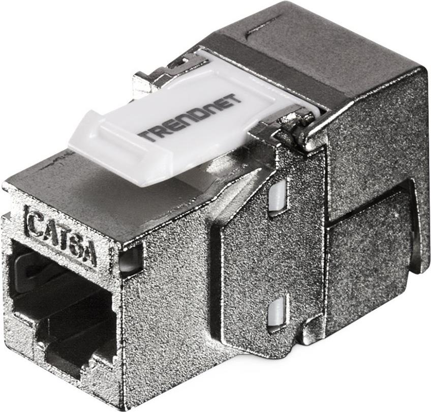 Die geschirmten Cat6A Keystone-Buchsen im 6er-Pack von TRENDnet, Modell TC-K06C6A, beinhalten sechs abgeschirmte Cat6A Keystone-Buchsen zur Verwendung mit dem TRENDnet TC-KP24S leeren geschirmten Keystone Patch Panel. Diese Metall-Keystone-Buchsen sind für Gigabit- und 10G-Kupfer-Ethernet-Netzwerkanwendungen ausgelegt. Jede geschirmte Keystone-Buchse ist für die Verwendung mit geschirmter Cat6A-Verkabelung ausgelegt, die EMI und Übersprechen eliminiert und so Spitzenleistung und Datenintegrität gewährleistet. Diese geschirmten Cat6A-Keystone-Buchsen zeichnen sich durch ein praktisches, werkzeugloses Design mit farbcodierter Beschriftung T568A und T568B für einen einfachen Kabelanschluss aus.