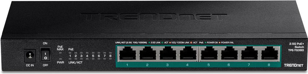 TRENDnet TPE TG380 - Switch - unmanaged - 8 x 10/100/1000/2.5G (PoE+) - Desktop, wandmontierbar - PoE+ (100 W)