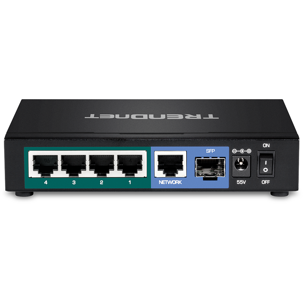 | Ports | 4 x 10/100/1000 (PoE+) + 1 x 10/100/1000 (Uplink) + 1 x Gigabit SFP |