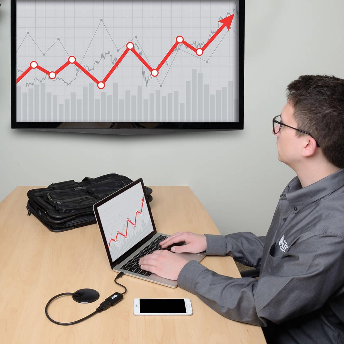 Erhöhen Sie Ihr Seherlebnis mit dem Eaton Tripp Lite Series USB-C to HDMI Video Adapter Converter. Dieser kompakte und leistungsstarke Adapter wurde entwickelt, um Ihre USB-C 3.1-Geräte mit HDMI-fähigen Monitoren, Projektoren und Fernsehern zu verbinden und so das Potenzial für High-Definition-Präsentationen, Spiele und Video-Streaming zu erschließen. Mit Unterstützung für Auflösungen bis zu 4Kx2K und einer V-Sync-Rate bei maximaler Auflösung von 60 Hz sorgt er für eine flüssige, lebendige und verzögerungsfreie Darstellung. Das USB-betriebene Design macht eine externe Stromquelle überflüssig und bietet eine saubere, übersichtliche Einrichtung. Egal, ob Sie im Büro, zu Hause oder unterwegs sind, dieser Adapter ist die perfekte Lösung zur Steigerung Ihrer Produktivität und Unterhaltung.
