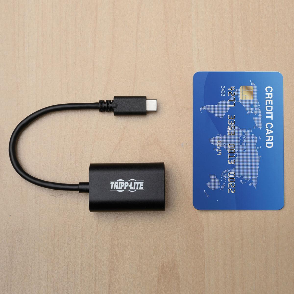 Erhöhen Sie Ihr Seherlebnis mit dem Eaton Tripp Lite Series USB-C to HDMI Video Adapter Converter. Dieser kompakte und leistungsstarke Adapter wurde entwickelt, um Ihre USB-C 3.1-Geräte mit HDMI-fähigen Monitoren, Projektoren und Fernsehern zu verbinden und so das Potenzial für High-Definition-Präsentationen, Spiele und Video-Streaming zu erschließen. Mit Unterstützung für Auflösungen bis zu 4Kx2K und einer V-Sync-Rate bei maximaler Auflösung von 60 Hz sorgt er für eine flüssige, lebendige und verzögerungsfreie Darstellung. Das USB-betriebene Design macht eine externe Stromquelle überflüssig und bietet eine saubere, übersichtliche Einrichtung. Egal, ob Sie im Büro, zu Hause oder unterwegs sind, dieser Adapter ist die perfekte Lösung zur Steigerung Ihrer Produktivität und Unterhaltung.Produkttext[/head]Verbindet ein HDMI-Display mit Ihrem USB-C- oder Thunderbolt 3-GerätKompatibel mit USB-C oder Thunderbolt 3 Quellgeräten, die den USB DisplayPort-Wechselmodus unterstützenIdeal für Videopräsentationen, das Bearbeiten mehrerer Dokumente oder das Streamen von Videos für Digital SignageErfüllt die HDCP 2.2-SpezifikationenHäufige AnwendungenErweitert das Video von Ihrem primären Display auf ein anderesDupliziert dasselbe Video auf 2 DisplaysWandelt eine sekundäre Anzeige in Ihre primäre Anzeige umKristallklares True 4K-Video und digitales AudioUnterstützt UHD-Videoauflösungen bis zu 4K x 2K (4096 x 2160) bei 60 Hz, wie in HDMI 2.0 spezifiziertUnterstützt 24-bit Deep Color (8 Bit pro Kanal)Unterstützt 7.1-Kanal-Surround-Sound-AudioUnterstützt Übertragungsraten pro Spur von 5,4 Gbit/s (HBR2), 2,7 Gbit/s (HBR) und 1,62 Gbit/s (RBR)Integriertes Kabel mit umkehrbarem USB-C-SteckverbinderProblemloser, umkehrbarer USB-C-Stecker, der in beide Richtungen angeschlossen werden kann und jederzeit eine schnelle Verbindung ermöglichtSofort betriebsbereitPlug-and-Play-Betrieb – keine Software, Treiber oder externe Stromversorgung erforderlichDie Hälfte des Footprints einer Kreditkarte für den einfachen Transport in einer Tasche, Handtasche oder LaptoptascheAbwärtskompatibel mit nicht-4K-Displays[head]Hauptmerkmale
