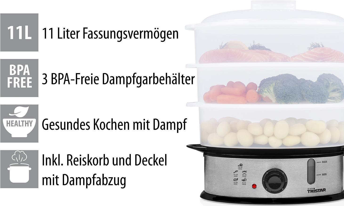 Tristar VS-3914 Dampfgarer BPA frei - 3 Korb/Körbe - Schwarz - Edelstahl - Durchscheinend - Arbeitsplatte - Drehregler - Vorderseite - 11 l (VS-3914)