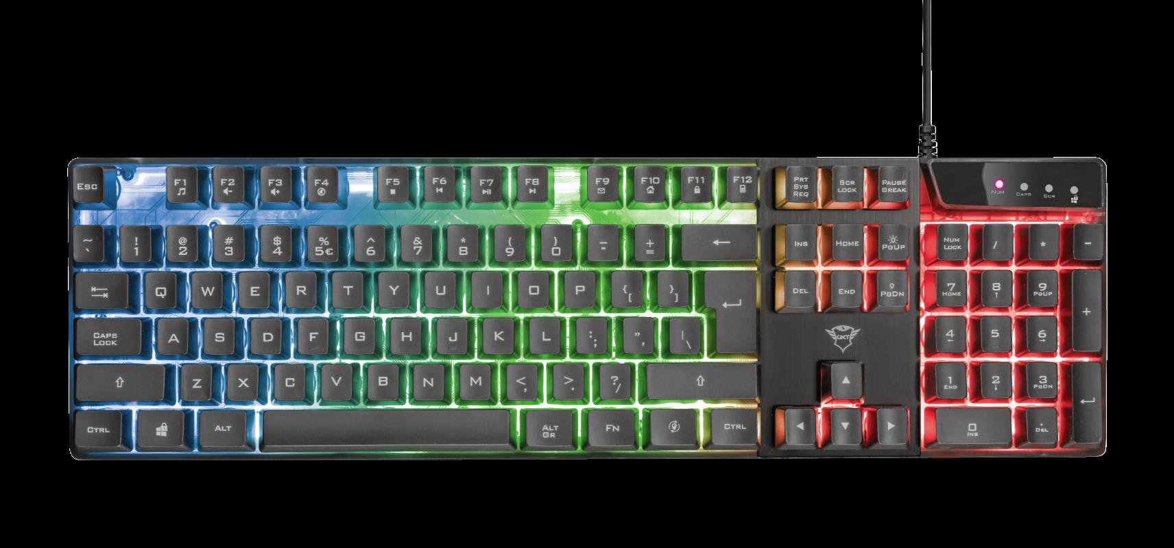 Die GXT 838 Azor-Tastatur und Maus funktionieren mit allen PCs und Laptops: stecken Sie sie einfach an und beginnen Sie Ihr Spiel. Richten Sie die Tastatur mit den rutschfesten Gummifüßen auf die passende Höhe ein und schon sind Sie bereit, um in voller Farbe zu spielen: die Tastatur bietet kombinierte LED-Farbmodi mit anpassbarer Helligkeit.