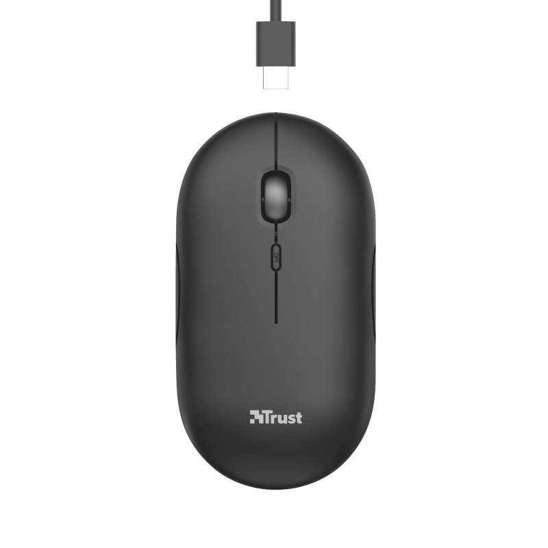 Trust Puck - Maus - rechts- und linkshändig - optisch - 4 Tasten - kabellos - Bluetooth, 2,4 GHz - kabelloser Empfänger (USB) - Schwarz (24059)