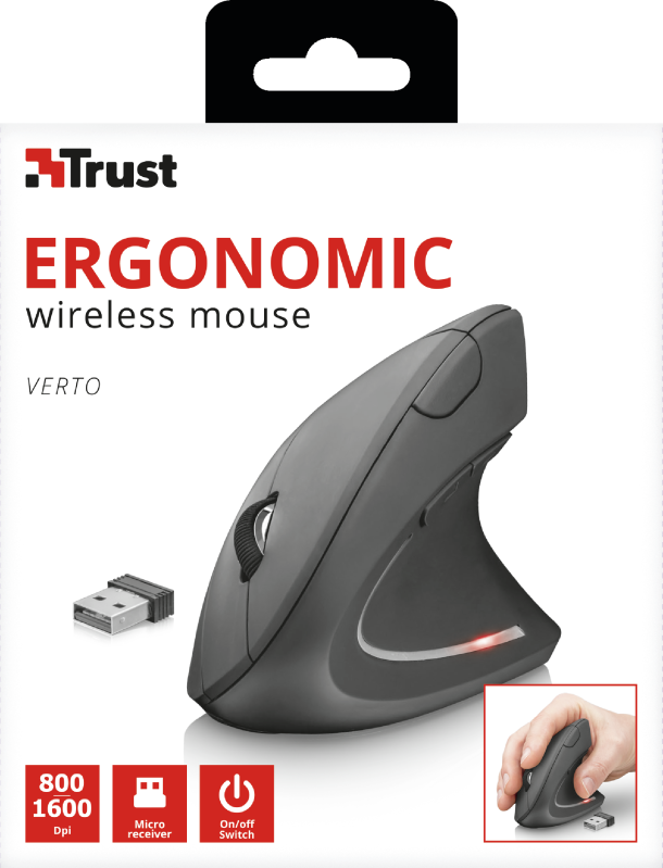 Trust Verto - Maus - ergonomisch - Für Rechtshänder - optisch - 6 Tasten - kabellos - 2,4 GHz - kabelloser Empfänger (USB) (22879)