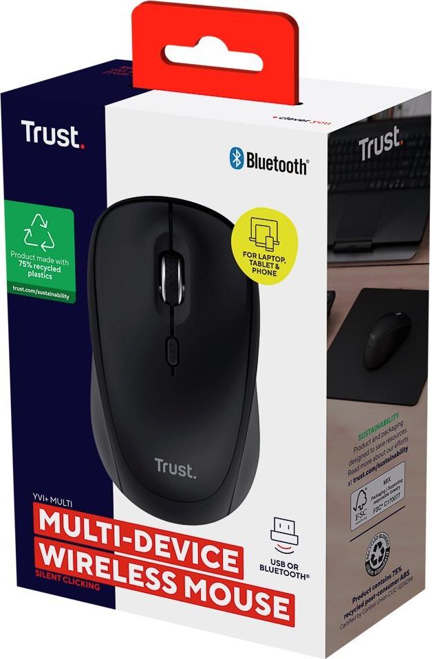 Die Trust Yvi+ Maus vereint Effizienz und Komfort in ihrem kompakten Design und ist damit ein idealer Begleiter für jeden Arbeitsplatz. Ausgestattet mit einer 2,4-GHz-Funkverbindung und Bluetooth 5.0 bietet sie vielseitige Konnektivitätsoptionen und ermöglicht eine nahtlose Kopplung mit mehreren Geräten. Diese Maus verfügt über eine geräuscharme Klickfunktion, die für eine ruhige Arbeitsumgebung sorgt, sowie ein Scrollrad für eine einfache Navigation.