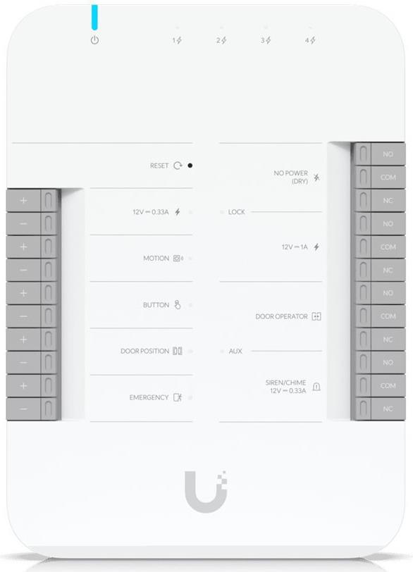 Der Ubiquiti UniFi UA-HUB-DOOR wurde für eine effiziente Türzugangskontrolle in Innenräumen entwickelt. Mit einem Betriebstemperaturbereich von 0 °C bis 40 °C und einer Luftfeuchtigkeit von 5 bis 95 % (nicht kondensierend) eignet sich dieses Produkt für verschiedene Umgebungsbedingungen. Dank Power over Ethernet (PoE) ist die Installation einfach, da nur ein Kabel für Strom und Daten benötigt wird, was den Einrichtungsprozess vereinfacht. Das Gerät ist mit vier Gigabit-Ethernet-Schnittstellen ausgestattet, die flexible Konnektivitätsoptionen zur Verbesserung Ihrer Netzwerkinfrastruktur ermöglichen. Der UA-HUB-DOOR besteht aus strapazierfähigem Polycarbonat und gewährleistet Langlebigkeit und Zuverlässigkeit. Mit der Einhaltung der Normen IC, FCC, UL 294 und CAN/ULC 60839-11-1 erfüllt dieser Zugangskontroller die erforderlichen gesetzlichen Anforderungen für einen sicheren Betrieb. Die Reset-Taste bietet eine einfache Methode zur Fehlerbehebung und Aufrechterhaltung einer optimalen Leistung und ist somit die ideale Wahl für die Verbesserung der Sicherheit an Zugangspunkten.
