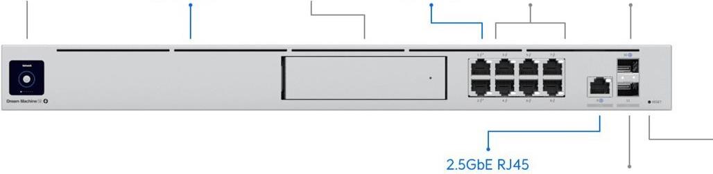 All-in-One-Router und Sicherheitsgateway mit integriertem PoE-Switch und Netzwerk-Videorekorder. Die Dream Machine Special Edition (UDM SE) ist eine UniFi OS-Konsole der Enterprise-Klasse, die sowohl Privat- als auch Geschäftskunden bei der nahtlosen Skalierung und Verwaltung ihrer Netzwerke mit Hochgeschwindigkeits-Dual-WAN-Konnektivität (10G SFP+ und 2,5GbE RJ45-Ports), einem Gigabit-PoE-Switch und einem Netzwerk-Videorekorder (NVR) mit 128 GB internem Speicher unterstützt. Angetrieben von UniFi OS, gibt Ihnen der UDM SE die volle Kontrolle über alle Ihre UniFi-Geräte, einschließlich Access Points, Protect-Kameras, Talk Phones und Access-Reader. Es ist auch eine zukunftssichere Konsole, da sie in der Lage sein wird, alle kommenden UniFi OS-Anwendungen auszuführen. Das UDM SE wurde für eine durchgängige Einfachheit entwickelt und verfügt über ein integriertes Bluetooth-Funkgerät, das den anfänglichen Einrichtungs- und Konfigurationsprozess rationalisiert.