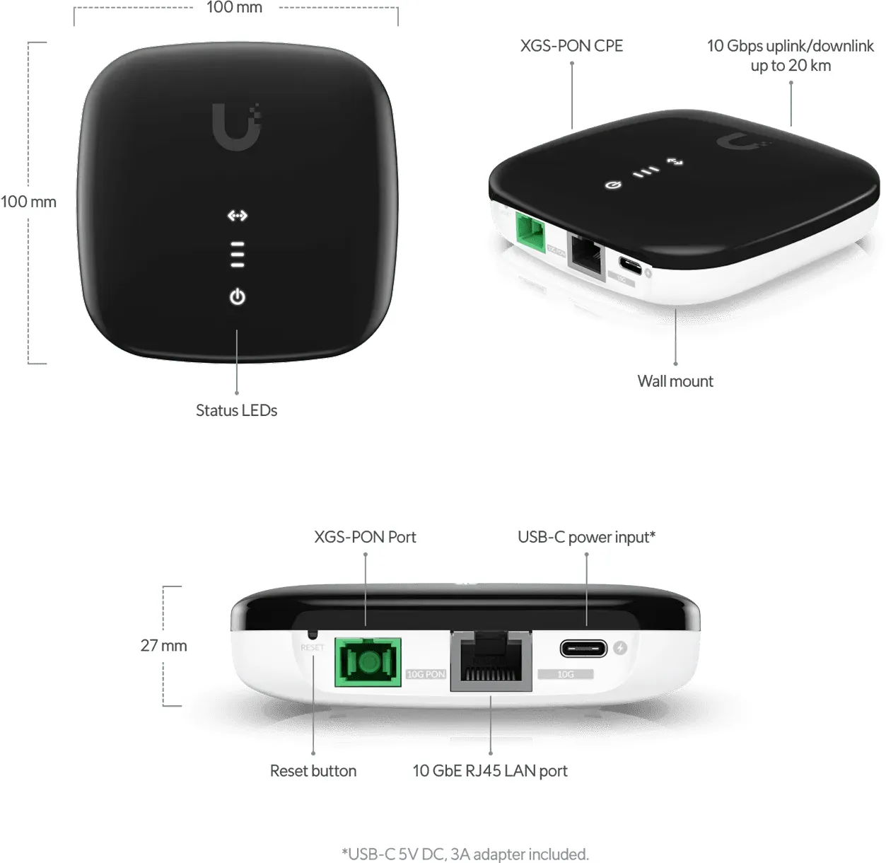 UBIQUITI UISP-FIBER-XGS 10GBPS XGS-PON OPTICAL NETWORK TERMINAL WITH A 10GBE RJ45 LAN (UISP-FIBER-XGS-EU)