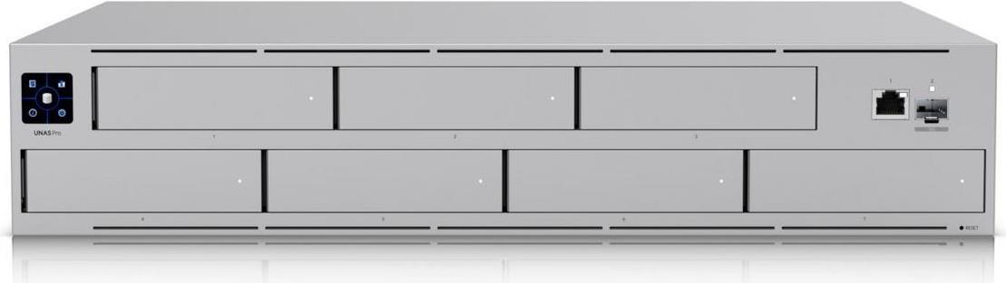 Der Ubiquiti UniFi UNAS Pro ist ein NAS-Server (Network-Attached Storage), der für nahtlosen Betrieb und Zuverlässigkeit entwickelt wurde. Mit einem eingebauten 1,3-Zoll-Touchscreen-Display können Benutzer einfach durch das System navigieren und es effizient verwalten. Mit der Fähigkeit, bis zu 7 Hot-Swap-Laufwerke im 2,5"- oder 3,5"-Formfaktor zu unterstützen, gewährleistet dieses Gerät skalierbare Speicherlösungen, die auf unterschiedliche Anforderungen zugeschnitten sind. Das Gerät ist für den Einsatz in anspruchsvollen Umgebungen konzipiert und eignet sich für einen weiten Betriebstemperaturbereich von -5°C bis 40°C und eine Luftfeuchtigkeit von 5% bis 95% (nicht kondensierend). Zu den erweiterten Netzwerkfunktionen gehört die Unterstützung von Ethernet 1000Base-T- und 10Gb-Konnektivität, die eine Hochgeschwindigkeitsdatenübertragung gewährleistet. Mit seinem soliden, rack-montierbaren Design und der zuverlässigen Konstruktion aus SGCC-Stahl kombiniert es Langlebigkeit mit effizienten Speicherlösungen für moderne Netzwerkanforderungen.
