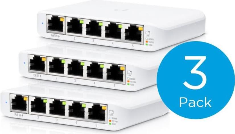 Ubiquiti UniFi Switch USW Flex Mini - Switch - Smart - 4 x 10/100/1000 + 1 x 10/100/1000 (PoE+) - Desktop - PoE+ (Packung mit 3)