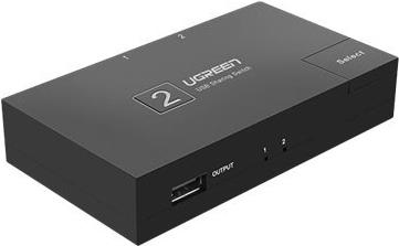 UGREEN 2 Ports USB 2.0 Teilen Switch 5,10cm (2") 1 Out Umschalter für Drucker Scanner Schwarz (30345)