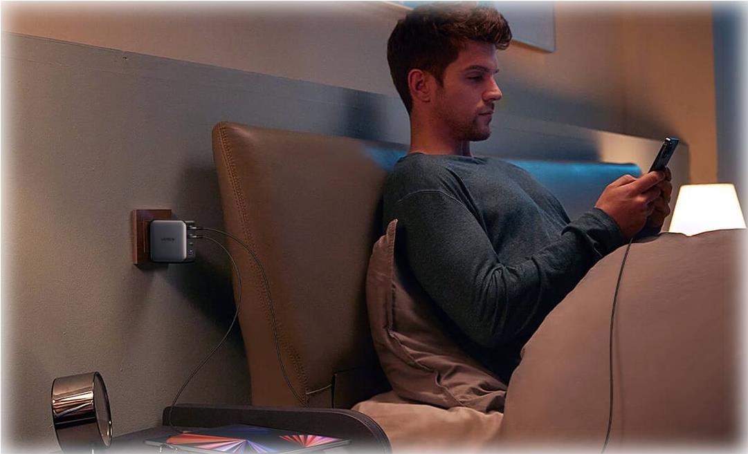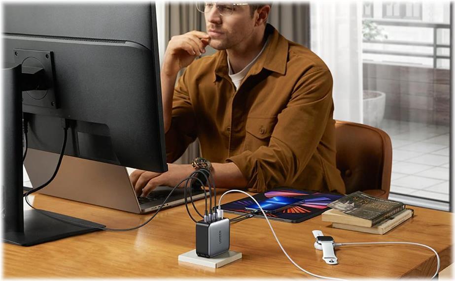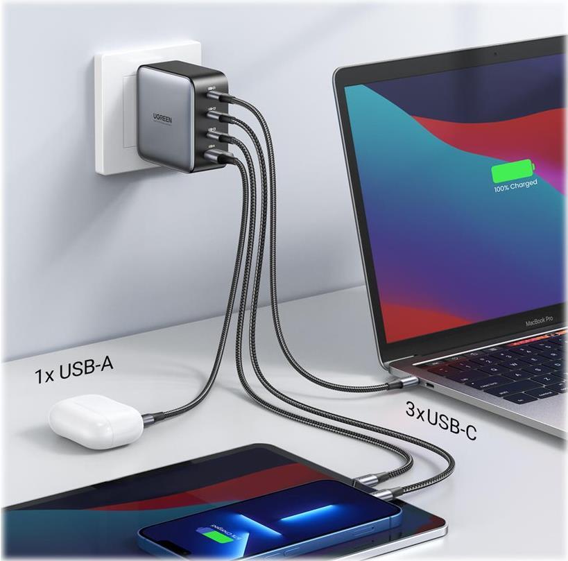 Das UGREEN 100 W GaN-Schnellladegerät wird vom Navitas GaN Power IC angetrieben und hat eine geringere Größe, aber mehr Leistung. Mit dem UGREEN 100 W USB-C-Ladegerät können Sie 4 Geräte gleichzeitig mit voller Geschwindigkeit aufladen und bis zu 1 Stunde Ladezeit sparen. Alle Anschlüsse unterstützen die QC-Vereinbarung (Schnellladung). Nur ein Ladegerät erfüllt alle Ihre Ladeanforderungen.