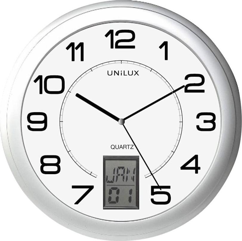 unilux Wanduhr "INSTINCT", Durchmesser: 305 mm Farbe: silber, LCD Anzeige wahlweise: Monat/Datum, - 1 Stück (100340853)