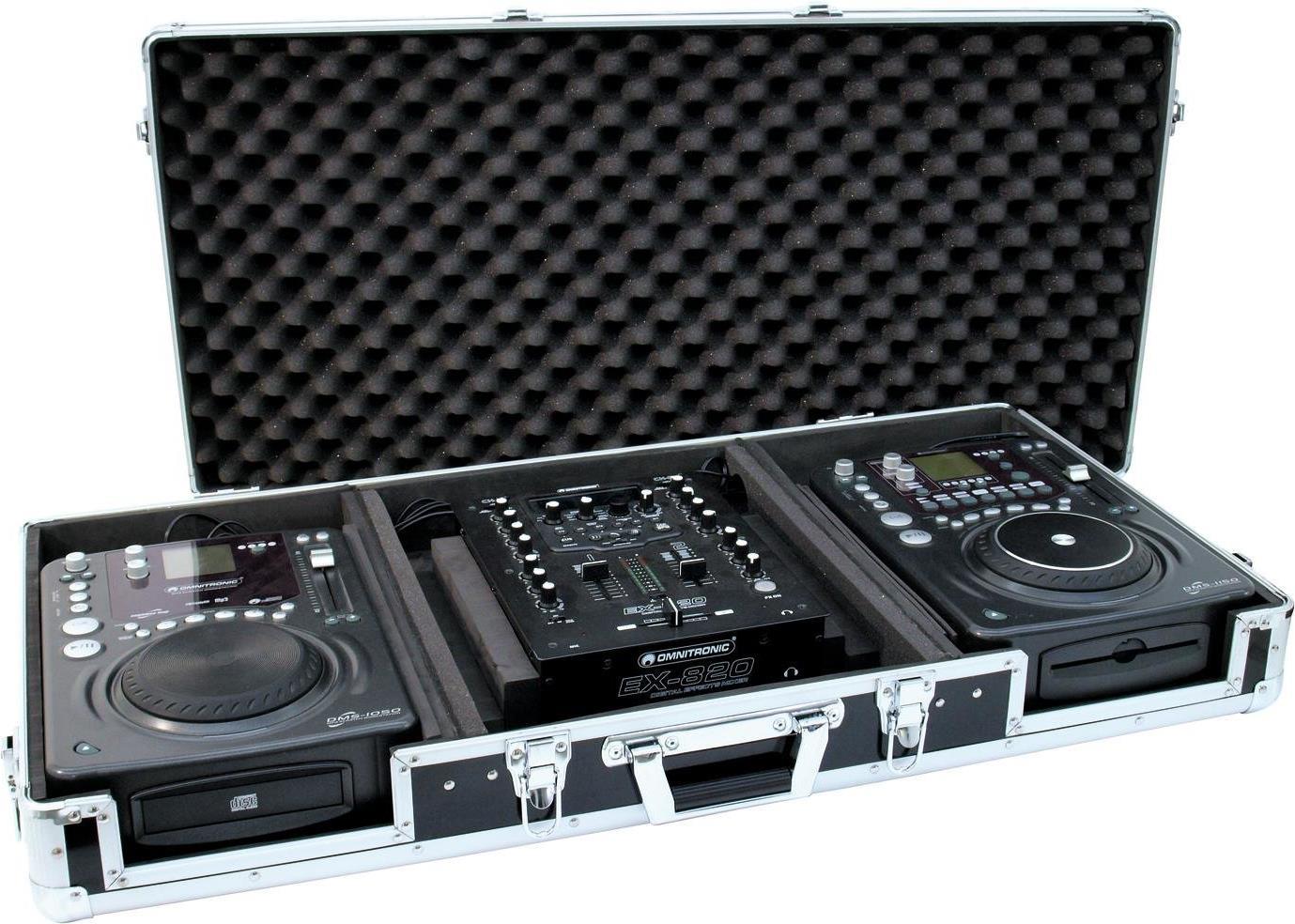 Universal-Konsole DIGI-1 2xCD/1xM-12 schwProfessionelles DJ-FlightcaseProfessionelles DJ-FlightcasePassend für zwei DJ-CD-Player und ein 305-mm-DJ-Mixer (12\"\")Abnehmbare Frontblende für CD-Player mit FronteinschubVorbereitete KabeldurchführungenAbnehmbarer gepolsterter DeckelSchaumstoffgepolsterter Innenraum (schwarz)Hochwertige Verarbeitung mit 3 mm mehrschichtig verleimtem Holz, schwarz laminiertAluminiumprofilrahmen (25 mm) mit abgerundeten EckenVernickelte Radius-Ecken4 hochwertige Schnappschlösser, davon 2 abbschließbar (2 Schlüssel beiliegend)GummifüßeGepolsterter TragegriffAdapterstreifen zum Einpassen einer der folgenden CD-Player:10602425 OMNITRONIC DMS-105010602426 OMNITRONIC DMS-115010602295 OMNITRONIC DJS-110010602296 OMNITRONIC DJS-1200Technische Daten: Gewicht: 7.9 kgProduktabmessung, Breite: 970 mmWeitere technische Daten: Maximalbelastung: 25 kgWandstärke: 3 mmAußenmaße (BxTxH): 950 x 460 x 155 mmLinkes/rechtes Fach (BxTxH): 255 x 430 x 80 mmMittleres Fach (BxTxH): 320 x 430 x 80 mmFrontöffnungen (BxH): 177 x 60 mmGewicht: 7 kg
