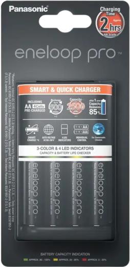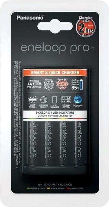 Panasonic eneloop pro smart & quick K-KJ55HCD40E - 3 Std. Batterieladegerät - (für 4xAA, 4xAAA) 4 x AA-Typ - NiMH - 2500 mAh (K-KJ55HCD40E)