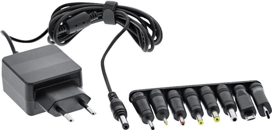 Dieses InLine Universal Netzteil liefert Ihnen immer die passende Stromversorgung. Verschiedene Wechselstecker bieten jedem gängigen Gerät den richtigen Anschluss, z.B. für MP3-Player, Radio, Computerzubehör, Kamera oder Spielzeug.• DC Stecker 5,5 x 2,1mm ist bereits am Kabel befestigt