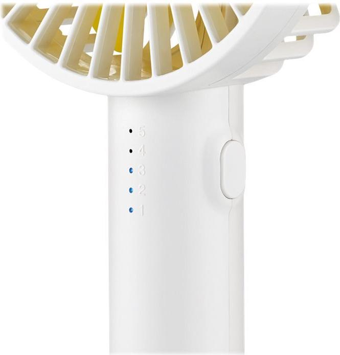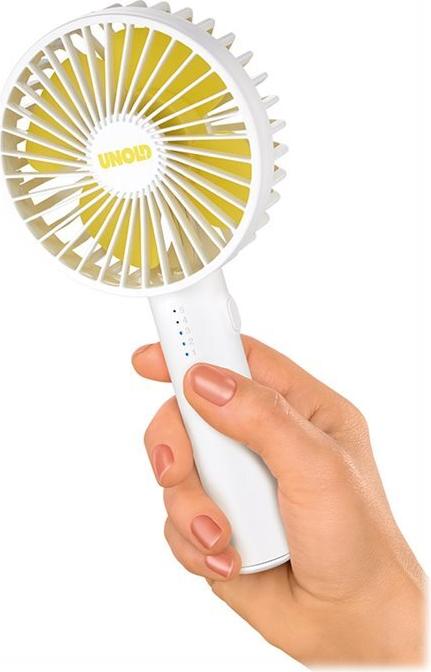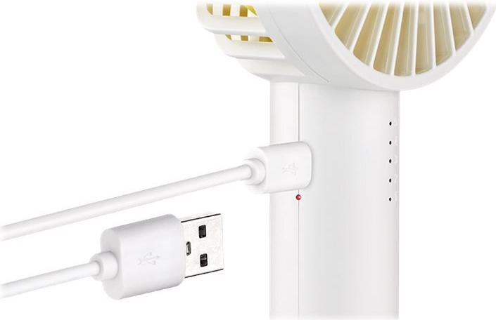 Ob sanft oder mit viel Effet: Der kompakte Handventilator Breezy II liefert auf Knopfdruck erfrischende Brisen in fünf Geschwindigkeitsstufen. Welche gewählt wurde, signalisiert die LED-Kontrollleuchte. Daheim und unterwegs - Breezy II funktioniert ganz ohne Kabel! Denn sein Akku sorgt, je nach Stufe, für eine Betriebsdauer von circa 2 bis 8 Stunden. Mit dem USB-Ladekabel (circa 95 Zentimeter lang) tankt er danach binnen circa 3 Stunden wieder neue Power für den nächsten Frische-Schub auf.