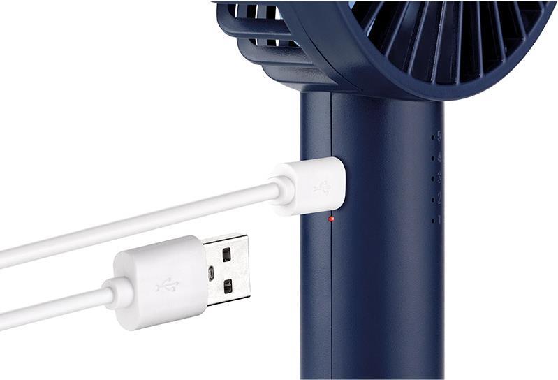 Ob sanft oder mit viel Effet: Der kompakte Handventilator Breezy II liefert auf Knopfdruck erfrischende Brisen in fünf Geschwindigkeitsstufen. Welche gewählt wurde, signalisiert die LED-Kontrollleuchte. Daheim und unterwegs - Breezy II funktioniert ganz ohne Kabel! Denn sein Akku sorgt, je nach Stufe, für eine Betriebsdauer von circa 2 bis 8 Stunden. Mit dem USB-Ladekabel (circa 95 Zentimeter lang) tankt er danach binnen circa 3 Stunden wieder neue Power für den nächsten Frische-Schub auf.