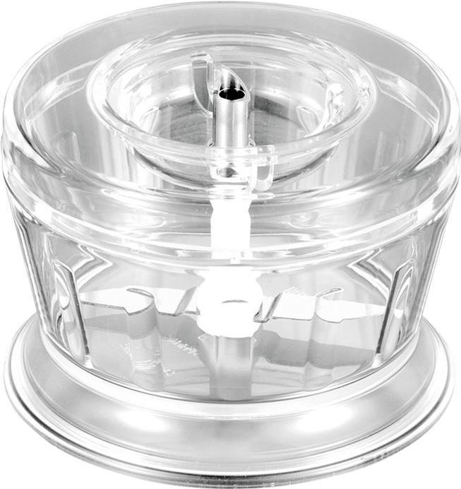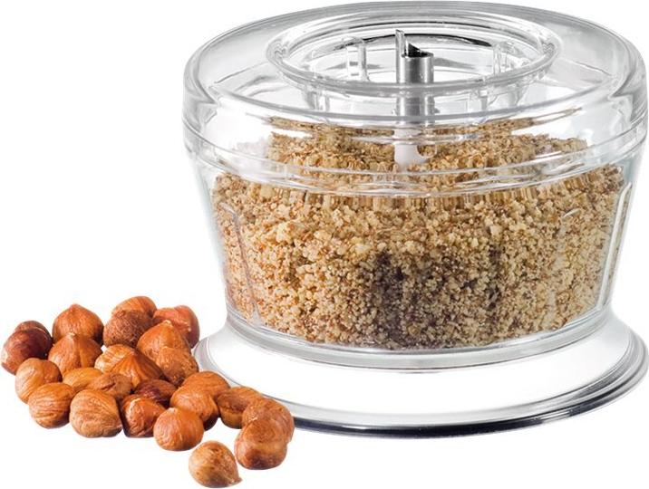 Die ideale Ergänzung für alle Esge-Zauberstab -Modelle. Was immer in der modernen Küche zerkleinert oder gemahlen werden muss, mit dem Esge-Zerkleinerer gelingt es im Nu. Das zweiflügelige Edelstahlmesser zerkleinert Nüsse, Gewürze Schokolade oder Kaffee-Bohnen und macht bei Bedarf aus Würfelzucker feinsten Puder. Der Inhalt bleibt solange im transparenten Behälter, bis der gewünschte Mahlgrad erreicht ist. Die Reinigung ist ebenso leicht wie die Bedienung, denn alle Teile sind spülmaschinenfest. Und standhaft ist die Küchenhilfe auch.
