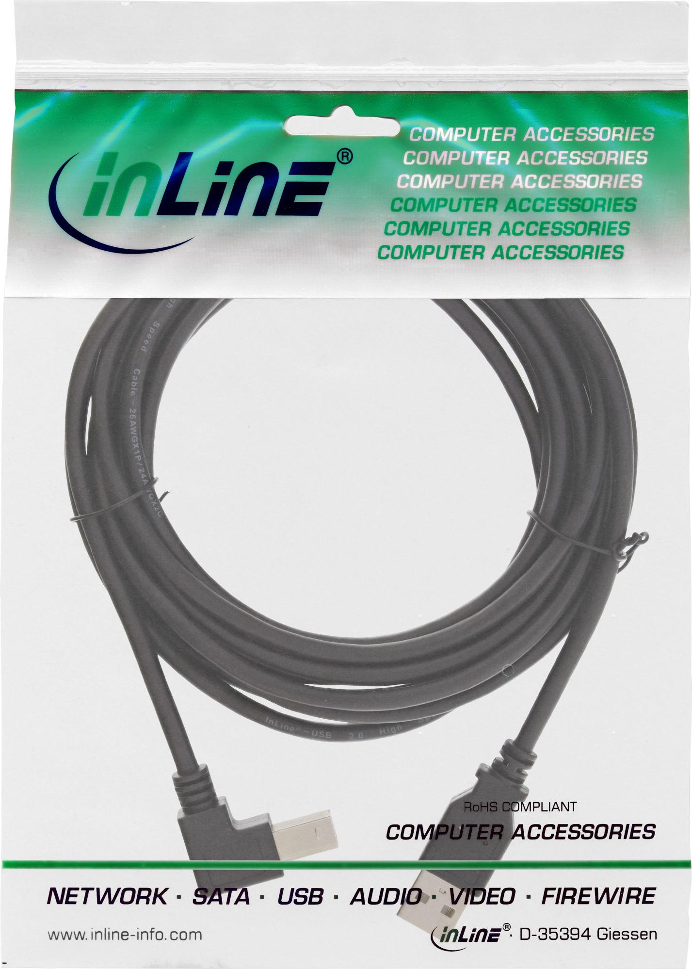 InLine® High Speed USB 2.0 ( Universal Serial Bus ) Kabel für die Datenübertragung mit einer maximalen Geschwindigkeit von 480Mbit/s. Dieses Kabel ist mit allen USB 2.0 und USB 1.1 und USB 1.0 Schnittstellengeräten kompatibel. Der um 90 Grad gebogene Typ-B-Stecker erleichtert die Installation in allen Situationen, in denen der Platz knapp ist.• USB Typ A Stecker auf USB Typ B Stecker