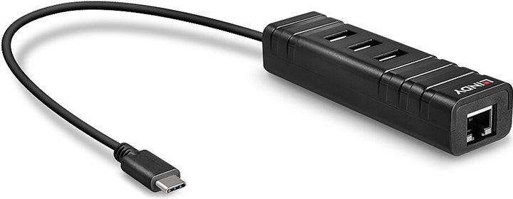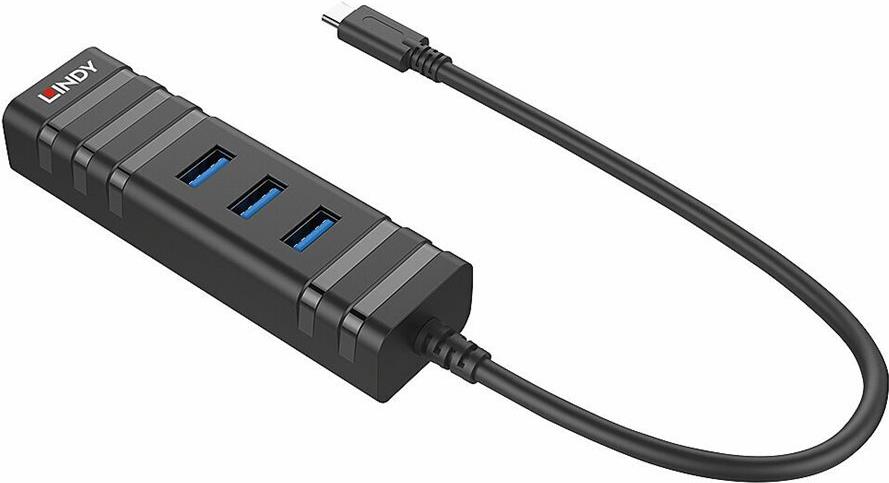 Lindy USB 3.1 Hub & Gigabit Ethernet Adapter - Netzwerk-/USB-Adapter - USB 3.1 Gen 1 - Gigabit Ethernet x 1 + USB 3.1 x 3 - Schwarz
