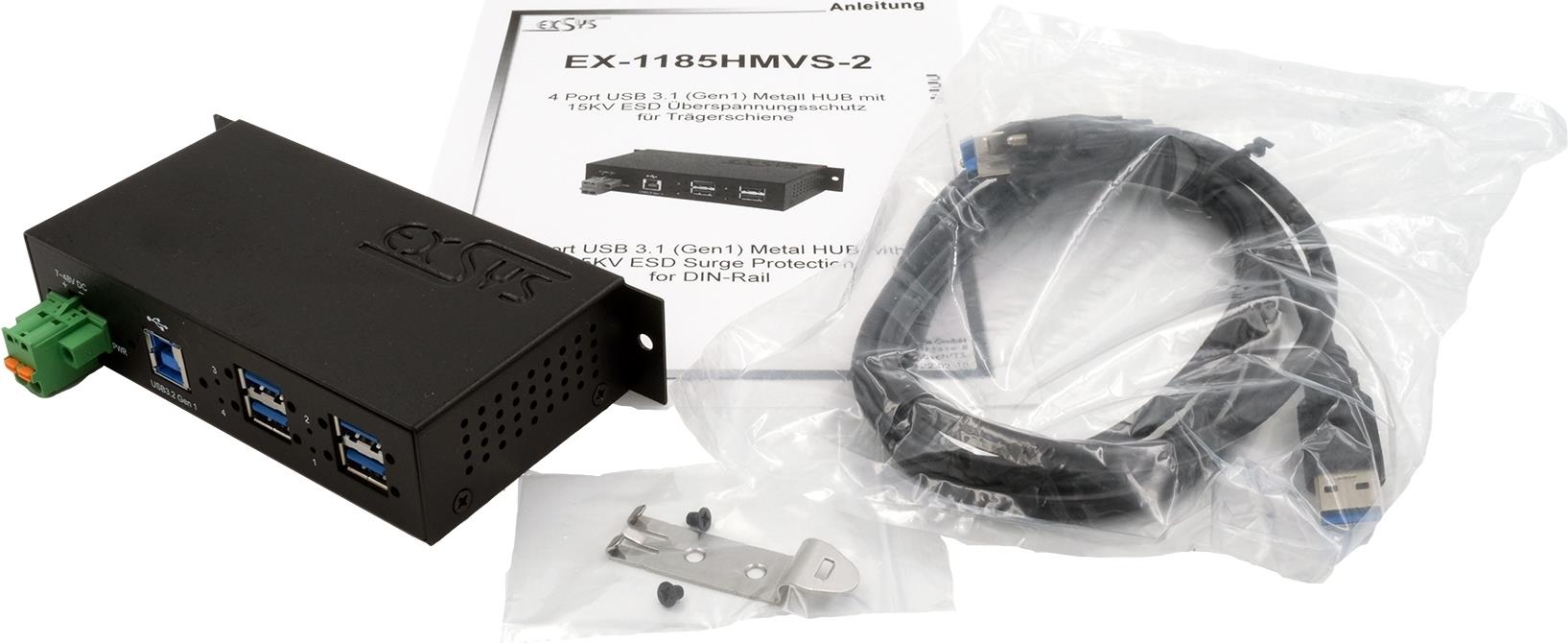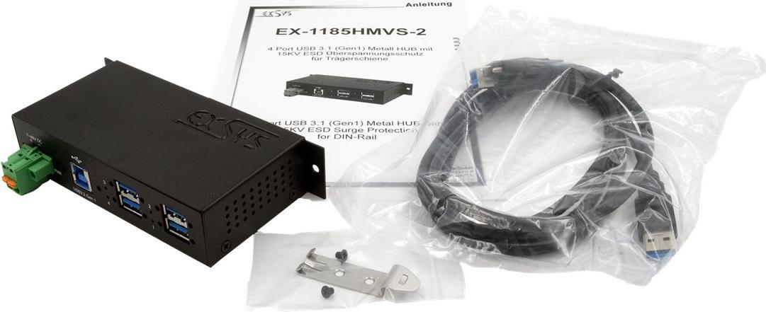Exsys EX-1185HMVS-2 - Hub - 4 x USB 3.2 Gen 1 - an DIN-Schiene montierbar - Gleichstrom