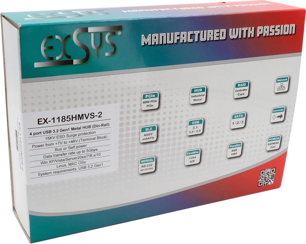 Der robuste, Industrie-taugliche EX-1185HMVS-2 USB-Hub mit vier USB 3.2 Gen1 (vorher genannt USB 3.0) Ausgängen verschraubbar und 15KV ESD Überspannungs-Schutz kann an die Wand oder auf einer Trägerschiene installiert werden. Er wird an einen Computer oder Server mit dem USB 3.2 Gen1 Kabel angeschlossen. Es wird die Hi-Speed USB 3.2 Gen1 Datenübertragungsrate von bis zu 5Gbit/s unterstützt und ist abwärtskompatibel bis USB 1.1. Er kann mit USB-Bus-Power (7-48V) oder über eine zwei drahtige Klemmleiste, wo die Drähte nur noch gesteckt werden, mit Strom versorgt werden.