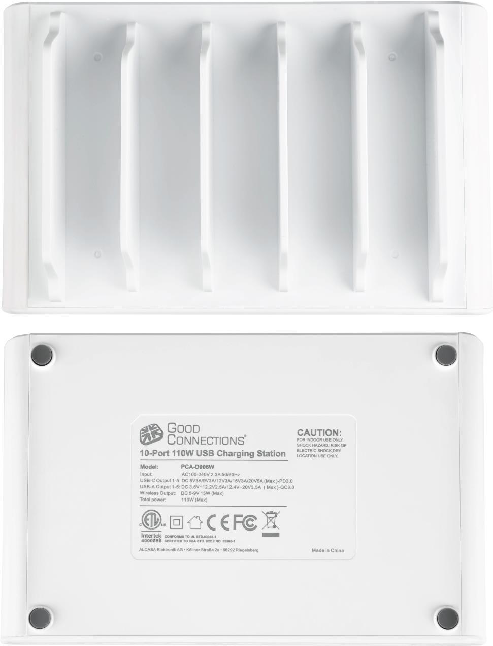 USB-Desktop-Schnellladestation 110W, 10-Port (5x USB-Câ„¢ und 5x USB-A), PD 3.0, QC 3.0, weiß, Good Co (PCA-D006W)