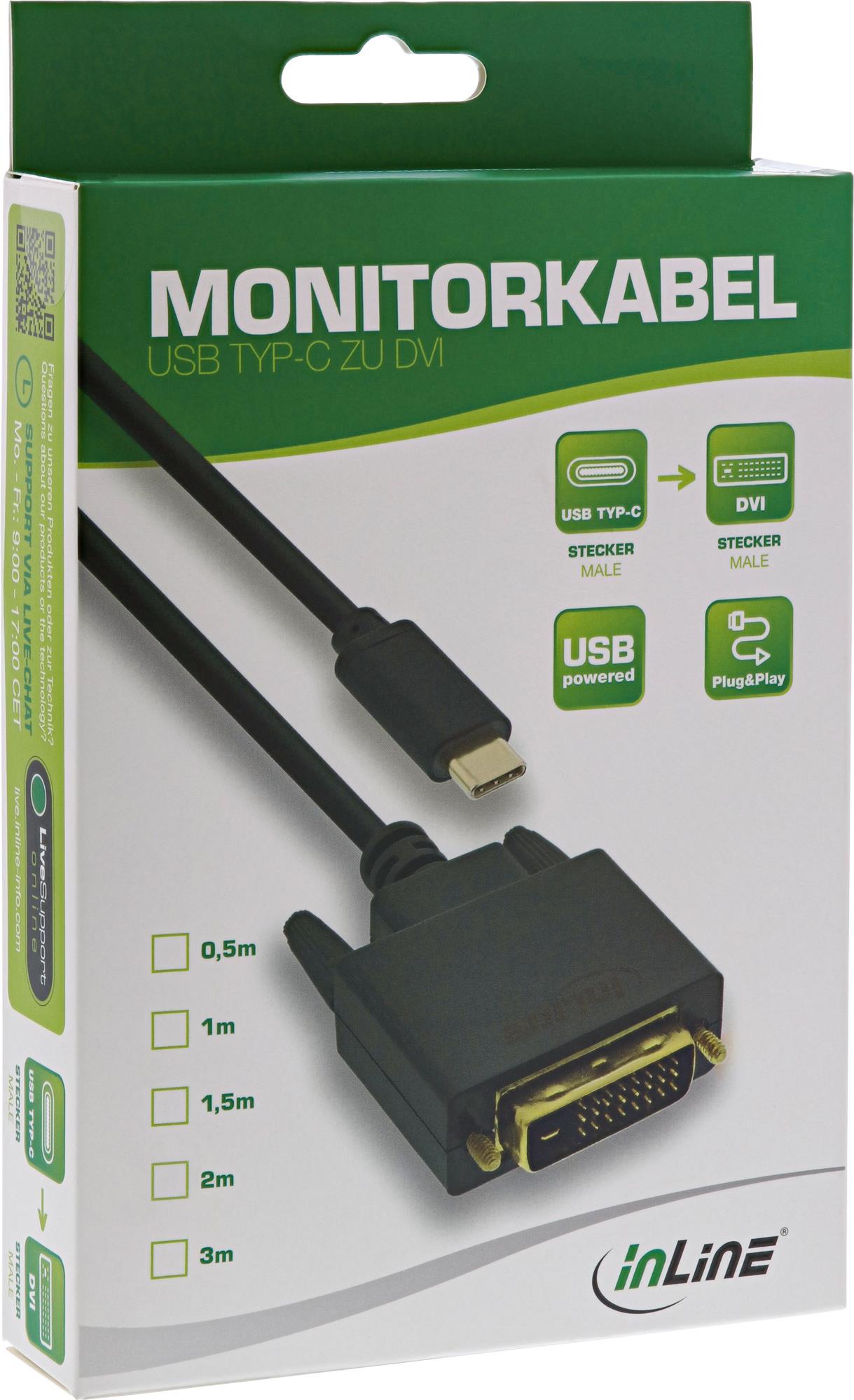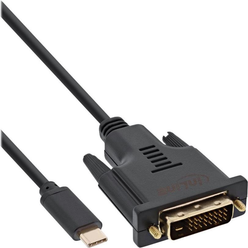 InLine - Videokabel - USB-C (M) bis DVI-D (M) - USB 3,1 Gen 1 / Thunderbolt 3 / DisplayPort 1,2 - 2,0m - 1080p-Unterstützung - Schwarz (64132)