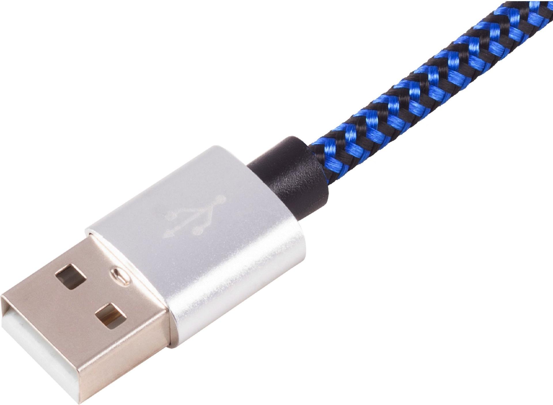 USB Ladekabel, USB-A-Stecker auf USB Micro B Stecker, Nylon, blau, 2m