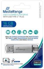 MediaRange combo - USB-Flash-Laufwerk - 16GB - USB 3,1 / USB-C - Silber (MR935)