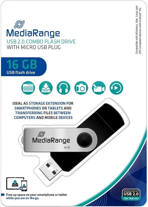 MediaRange USB Kombo-Speicherstick mit Micro USB (OTG) Stecker, 16GB