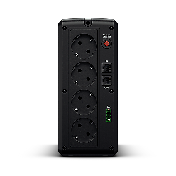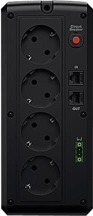 | Besonderheiten | Potenzialfreies Relais, hörbarer Alarm, Automatische Spannungsregelung (Automatic Voltage Regulation, AVR), LED-Anzeiger, Überlastungsschutz, Starterbatterie, generatorkompatibel, GreenPower UPS Bypass Technology, Human Interface Device (HID) Support |