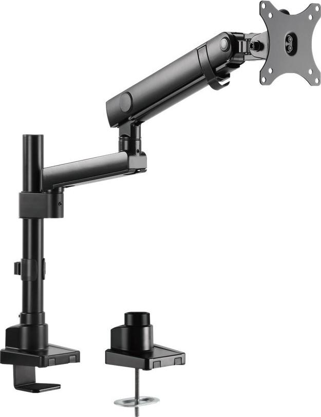Schnelle und einfache Positionierung des Bildschirms mit der Professional Dual-Monitorhalterung mit Touch-Anpassung für Schreibtische von V7. Die für außergewöhnliche Strapazierfähigkeit aus qualitativ hochwertigem Aluminium und kaltgewalztem Stahl gefertigte Halterung mit mattschwarzer Oberfläche kann Bildschirme mit bis zu 32 Zoll oder 8 kg (17 lbs) halten. Ab sofort müssen Sie nie mehr unter den Tisch kriechen, denn diese Halterung lässt sich komplett von oben installieren und ist dank der schraublosen Armmontage schnell und einfach einsatzbereit. Dank des modernen Kabelführungssystems für sauber geordnete und nicht sichtbare Video- und Stromkabel eignet sie sich für praktisch jeden Arbeitsplatz. Die Höhenjustierung und die unabhängig verstellbaren Arme ermöglichen mehrere Betrachtungswinkel, damit Sie Ihren Bildschirm so anordnen können, wie es für Sie gerade am bequemsten ist.