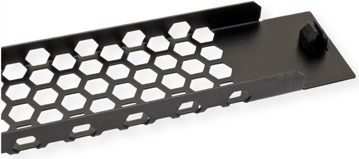 VALUE 19"-Belüftungsplatte lackiert in RAL 9005 (schwarz) zum Abdecken nicht benötigter Höheneinheiten - mit Snap-In Mechanismus für die einfache und schnelle Montage ohne Käfigmuttern oder anderes Zubehör. • Geeignet für alle 19"-Netzwerk- oder Serverschränke • Geeignet, um nicht benötigte Einbauplätze zu verdecken • Unterstützt schrankinterne Belüftung durch Perforation • Via Snap-In (Schnappverschluss-Funktionalität) Mechanismus schnell und leicht zu montieren • Benötigt keine Werkzeuge oder Käfigmutter-Befestigungsschrauben • Material: Stahl • 19"-Blindblende mit einer Höheneinheit (1 HE).