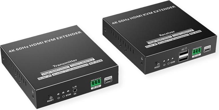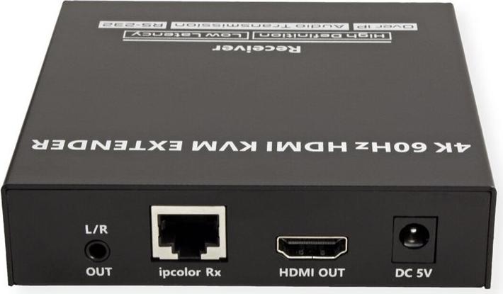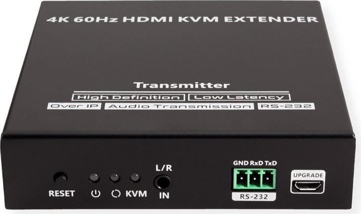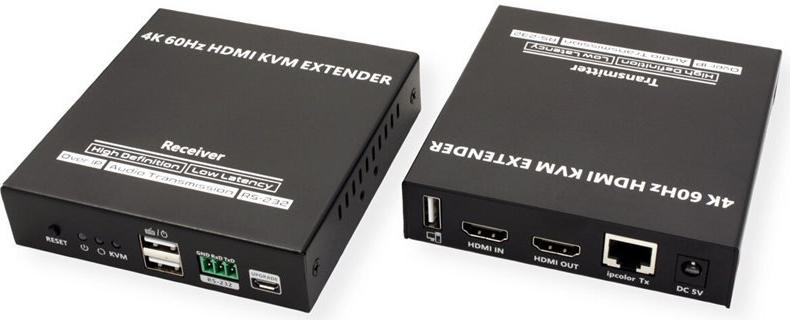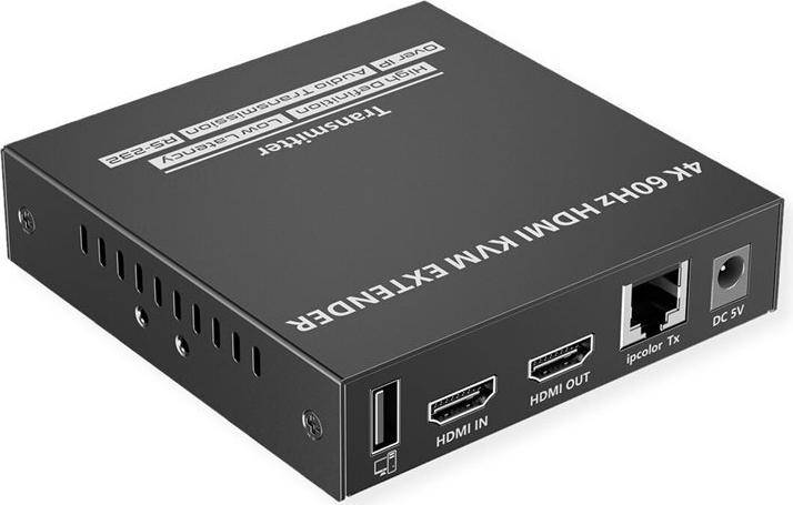 KVM-Verlängerung über Kat.6/6A/7-Kabel für die Steuerung eines Computer-Systems in bis zu 120 Meter Abstand von der Remote-Konsole aus (HDMI-Monitor, USB-Tastatur und USB-Maus). Die Nutzung der ipcolor STREAM Technologie erlaubt hohe Auflösungen (HDMI bis 4K@60Hz) bei gleichzeitig niedriger Latenz. Dabei ist es auch möglich, Verbindungen zwischen Konsole und PC über einen oder mehrere Gigabit Ethernet Switches herzustellen. Eine entfernte Konsole kann mit einem PC oder KVM-Switch verbunden werden Unterstützt HDMI mit Auflösungen bis 3840 x 2160 bei 60 Hz Übertragungsdistanz bis zu 120 m - mit Kabeln der Kat.6 und höher ipcolor STREAM Technologie erlaubt hohe Auflösungen (HDMI bis 4K@60Hz) bei gleichzeitig niedriger Latenz An der Sende (TX) Einheit kann ein HDMI-Monitor angeschlossen werden Auf der Empfangsseite (RX Einheit) bietet ein 3,5 mm Port Anschlussmöglichkeit für z.B. Lautsprecher Unterstützt HDMI Loop-Out und RS-232 Passthrough Zur Nutzung u.a. in Meetings, Schulungen oder z.B. auch für das Home Entertainment Stabiles MetallgehäuseTechnische Daten: Sender (TX) Anschlüsse: 1x HDMI in, 1x HMDI (loop out), 1x RJ-45, 1x USB A, 1x USB Micro B (für Firmware-Update), 1x RS-232, 1x 3,5 mm in, 1x DC 5V Empfänger (RX) Anschlüsse: 1x HDMI, 1x RJ-45, 2x USB A, 1x USB Micro B (für Firmware-Update), 1x RS-232, 1x 3,5mm out, 1x DC 5V Abmessungen Sender/Empfänger (jeweils): 21 x 103 x 106 mm Gewichte: Sender 315 g, Empfänger 307 g Lieferumfang: Sender, Empfänger, 2x Netzteil DC 5V 2A, 1x USB-Kabel A-A, 4x Montagewinkel, 2x Terminal Block (RS-232), 1x Handbuch.