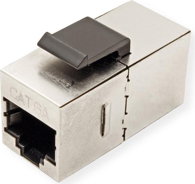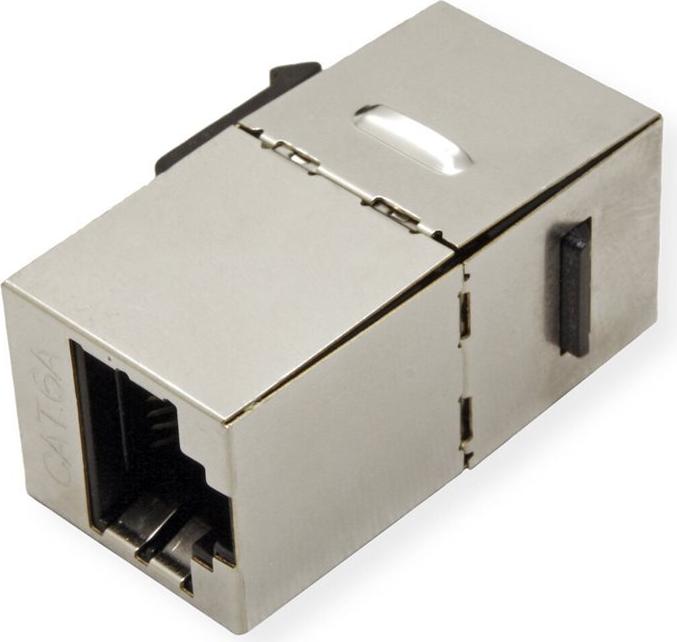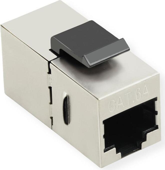 Geschirmte Keystone Kupplung in CAT.6A zur Verbindung bzw. Verlängerung von RJ-45 Netzwerkkabeln Geschirmte RJ-45 Kupplung zum Verlängern von Twisted Pair Kabeln Passend für Keystone-Panel und Anschlussdosen Geeignet für Kat.6A Verkabelungen bis 500 MHz Gesamtes Gehäuse aus Metall zum Schutz der Signale gegen elektromagnetische Einstreuung 8 Kontakte, 1:1 verbunden Schmaler Formfaktor für Umgebungen mit wenig Platz.
